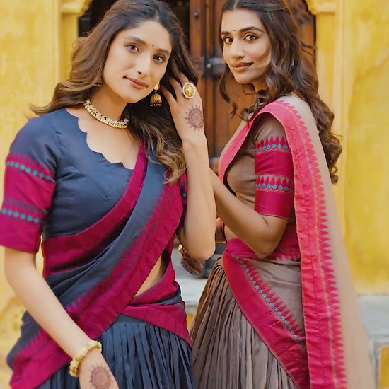 - Chanderi Thread Work Lehenga Choli