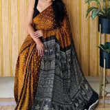 Gold Brown Ajrakh Digital Print Modal Silk Saree