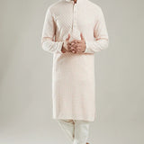 Experience the luxury of bespoke craftsmanship with this custom-fitted men's kurta pajama set, meticulously handwoven from premium Dola silk. Adorned with intricate embroidery work, this ensemble combines traditional artisanal techniques with personalized tailoring to ensure a perfect fit. Ideal for weddings, celebrations, and formal occasions, it represents the pinnacle of Indian ethnic wear, offering both elegance and comfort for the discerning gentleman.