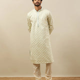 Handmade Off White Tusser Silk Kurta Churidar Set: Indian Wedding Wear