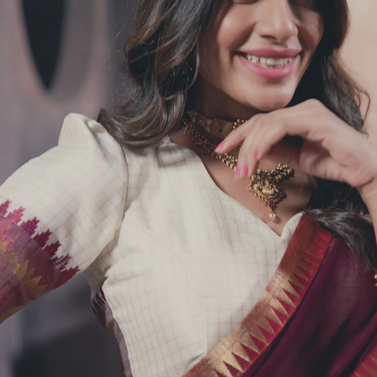 Elegant Kalyani cotton lehenga choli set crafted in poly cotton fabric with classic chex zari weaving work. The stitched lehenga features a 3.5-meter flair, canvas support, micro cotton inner, and a drawstring with zip closure for comfortable fitting. Paired with an unstitched matching blouse and a lightweight georgette dupatta enhanced with weaving lace border, this outfit is perfect for festive and traditional occasions.