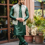 Mens Handmade Embroidered Waistcoat Kurta Pajama Set: Wedding Wear