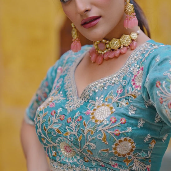 - Pastel Floral Zari Shimmer Embroidered Lehenga Set