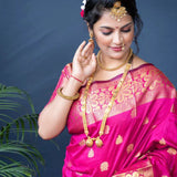 Pink Silk Woven Banarasi Saree