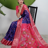 Elevate your traditional attire with this exquisite Kalamandir Sarees crafted from premium Linen Cotton. Featuring a stunning Pochampalli design and embellished with Dolla Silk border, this saree exudes elegance and grace. The intricate Ikkat designer motifs add a contemporary touch, making it a perfect blend of classic and modern styles. Whether you wear it to a wedding, festival, or special occasion, this Mahi Saree is sure to make you stand out in the crowd. Flaunt your unique sense of style with this versatile and timeless piece that will undoubtedly become a treasured addition to your ethnic wardrobe.