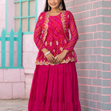 Step into elegance with this stunning Pure Bandhej Crop Top, Chinon Lehenga & Jacket Set, beautifully detailed with heavy embroidery thread work. Designed for weddings, Navratri, festive celebrations, sangeet, and engagement functions, this outfit blends traditional Bandhej charm with modern designer styling.