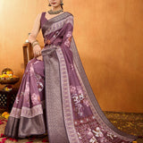 Purple Floral Printed Zari Pure Crepe Saree