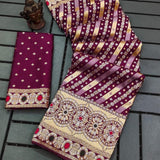Sawan Special Royal Maroon Bandhej Embroidered Saree