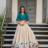- Tussar Silk Floral Print Lehenga Choli (Fully Stitched)