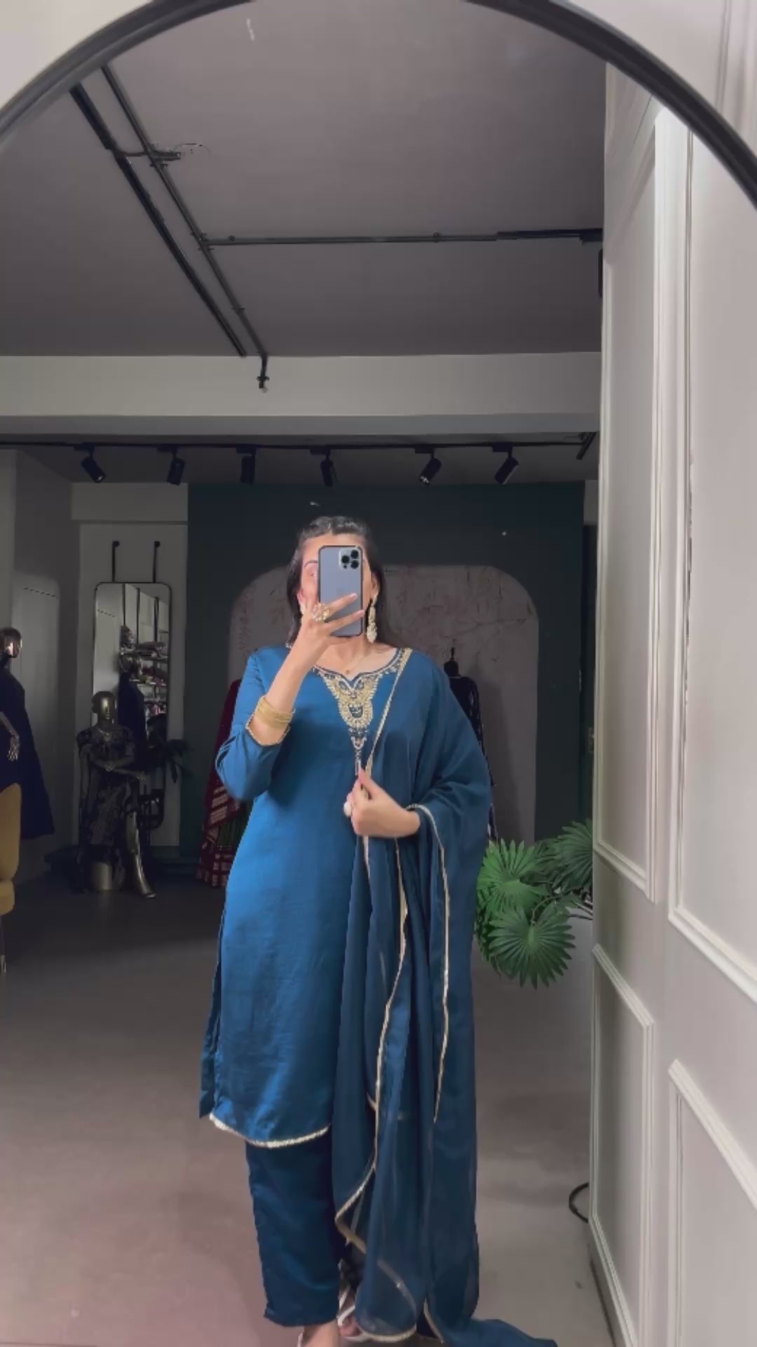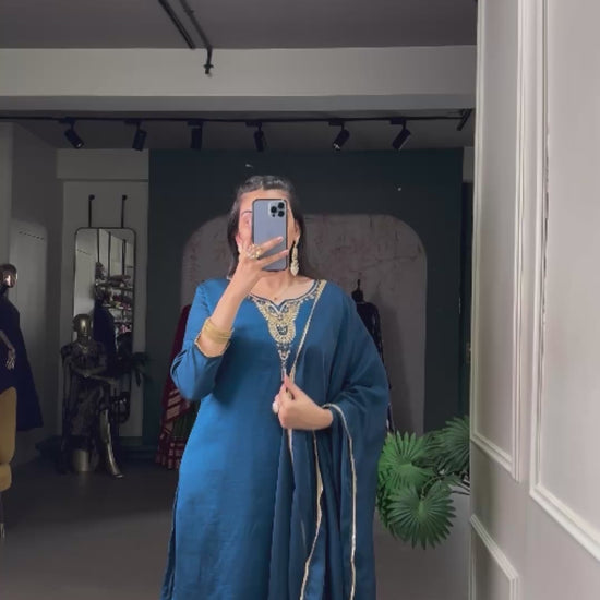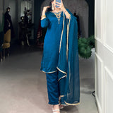 Step into elegance with this beautifully designed Vichitra Silk Top-Bottom-Dupatta Set, crafted for women who love graceful festive fashion.