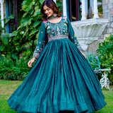 Women’s Festive Embroidered Fendy Silk Gown with Dupatta