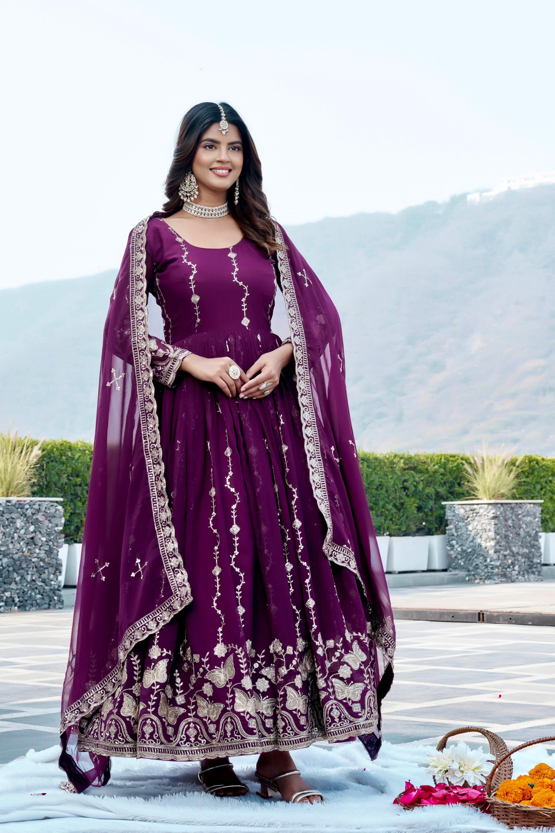 ✨ Elegant Fox Georgette Embroidered Gown with Dupatta