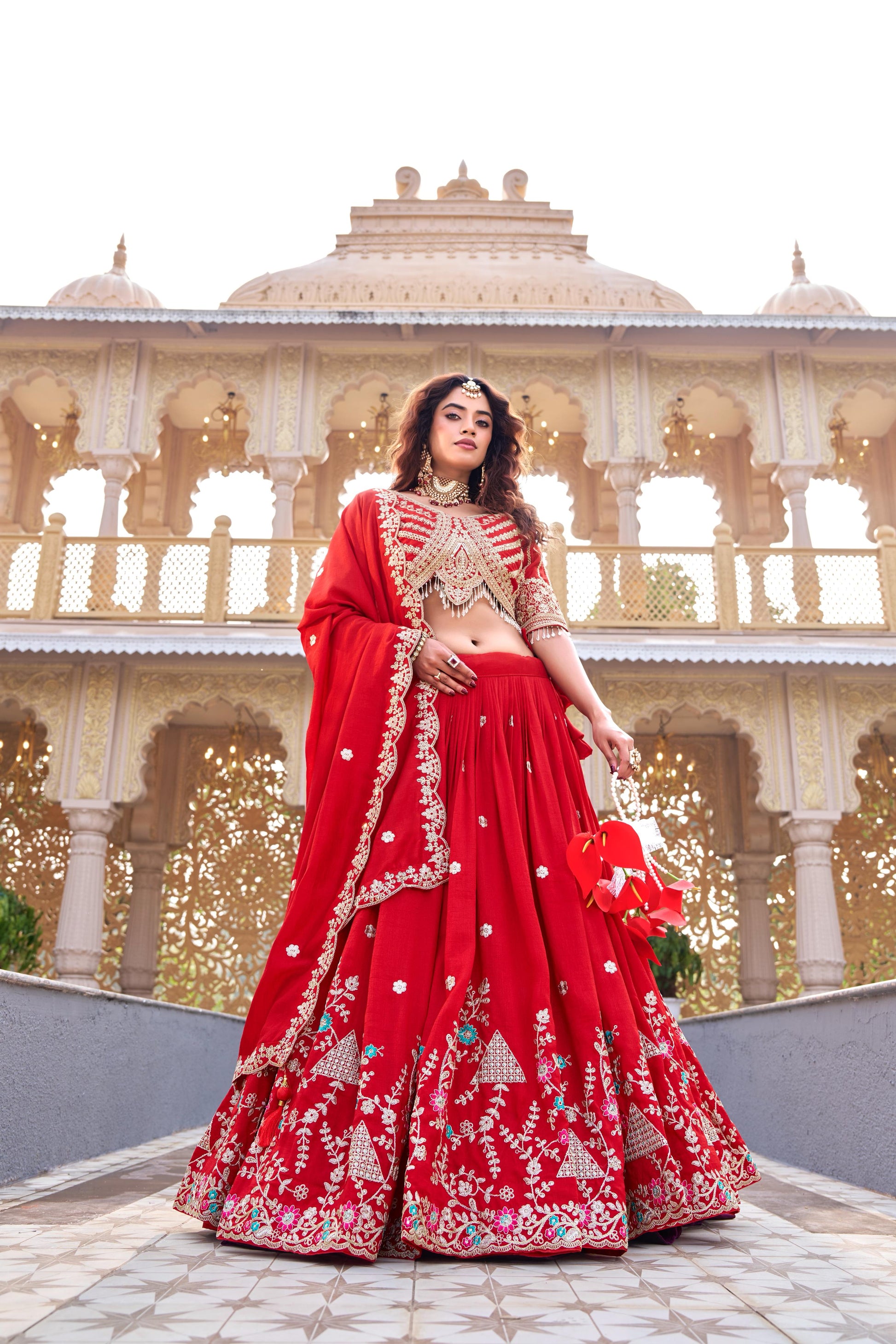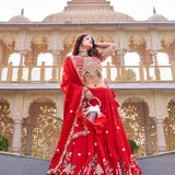 Upgrade your ethnic wardrobe with this beautiful Pure Vichitra Lehenga Choli Set, crafted with heavy cording embroidery, sequins, and thread work that gives the outfit a rich and designer appearance. Perfect for weddings, festive celebrations, receptions, and traditional occasions, this outfit combines elegance with modern ethnic fashion.