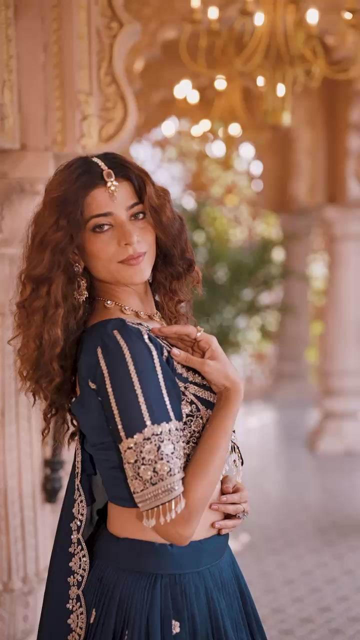 ✨ Elegant Vichitra Cording Embroidered Lehenga Choli Set