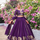 Women’s Pure Vichitra Embroidered Lehenga Choli Set with Dupatta