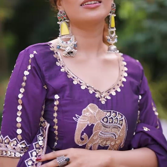 - Women’s Pure Vichitra Embroidered Lehenga Choli Set with Dupatta