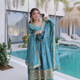 ✨ Elegant Super Silk Sequins Embroidered Kurti Sharara Set